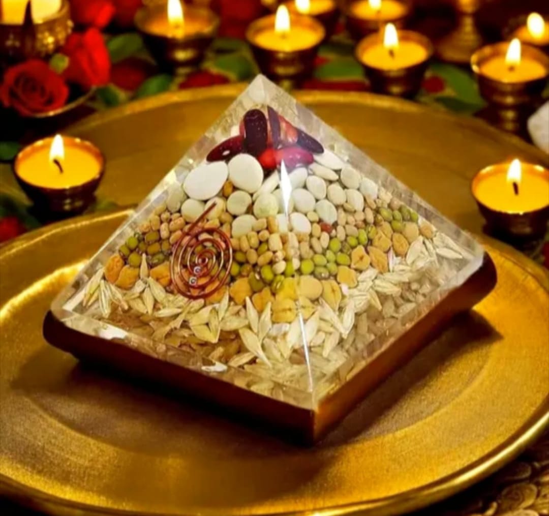 This unconventional yet powerful pyramid is filled with a variety of grains, beans, and seeds, representing the bounty of the earth and the cycle of life. It is believed to symbolize abundance, fertility, and prosperity in all aspects of life, from financial to personal. The copper coil within the resin is said to amplify these intentions. This pyramid is a beautiful and meaningful item for anyone looking to manifest growth, wealth, and good fortune into their life.