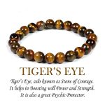 This striking Tiger’s Eye bracelet is a powerful accessory for everyday wear. Referred to as the “Stone of Courage,” its beautiful golden-brown chatoyancy is believed to boost willpower, provide strength, and offer a powerful shield of psychic protection. It’s a great choice for anyone seeking a boost of confidence and luck.