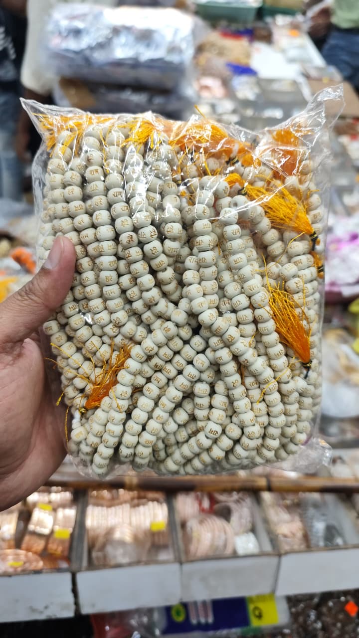 This mala is handcrafted from sacred Tulsi (holy basil) wood, a material revered in Hinduism for its purity and spiritual properties. Each bead is meticulously inscribed with the name “Rama,” a powerful mantra for devotion and peace. Using this mala in your practice is believed to bring blessings, tranquility, and a deeper connection to your spiritual path. It’s a wonderful tool for chanting and meditation.